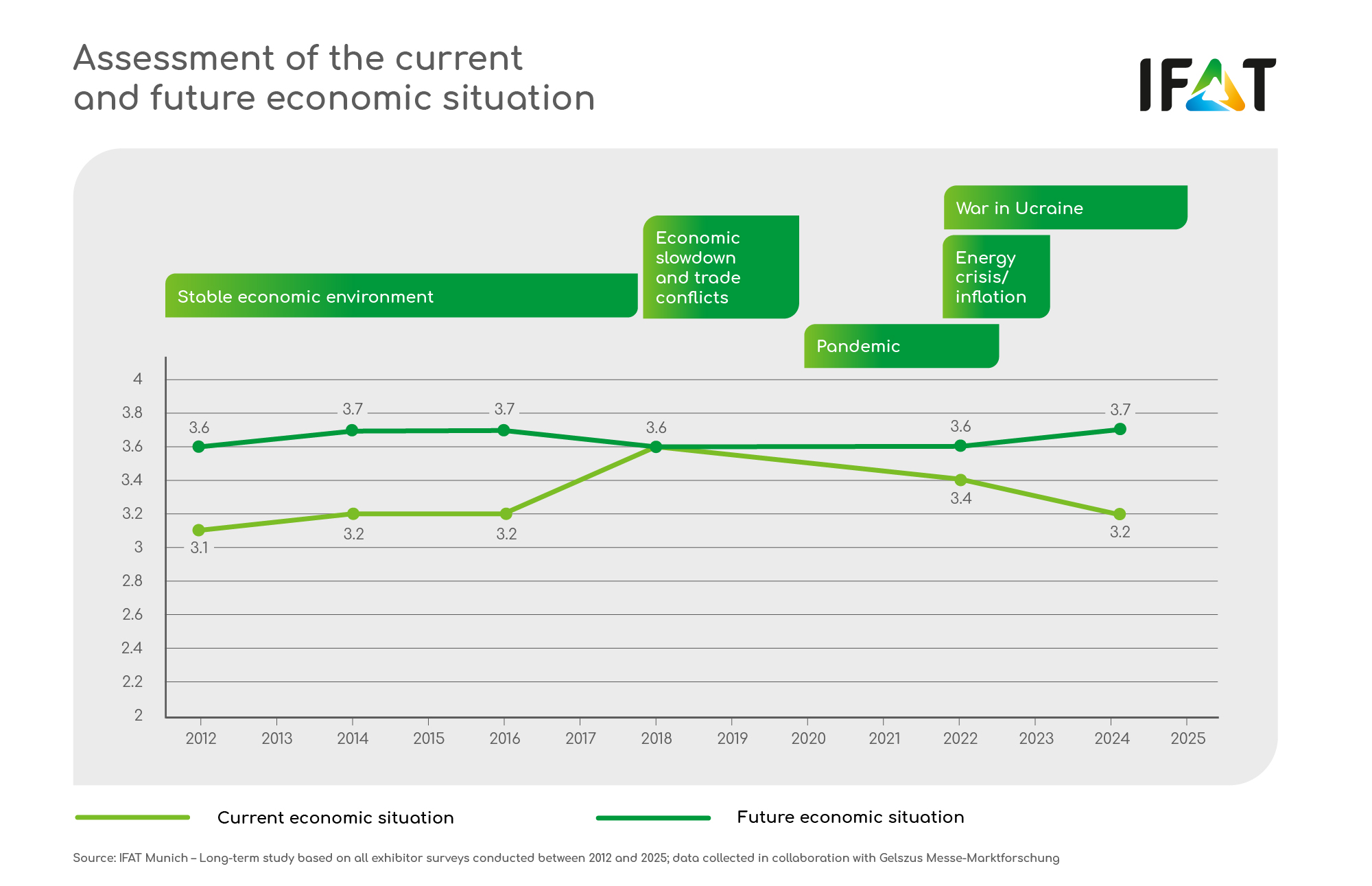 Even in challenging times, environmental technologies remain a reliable future market, according to a long-term analysis for which IFAT Munich evaluated exhibitor surveys from the past 13 years.